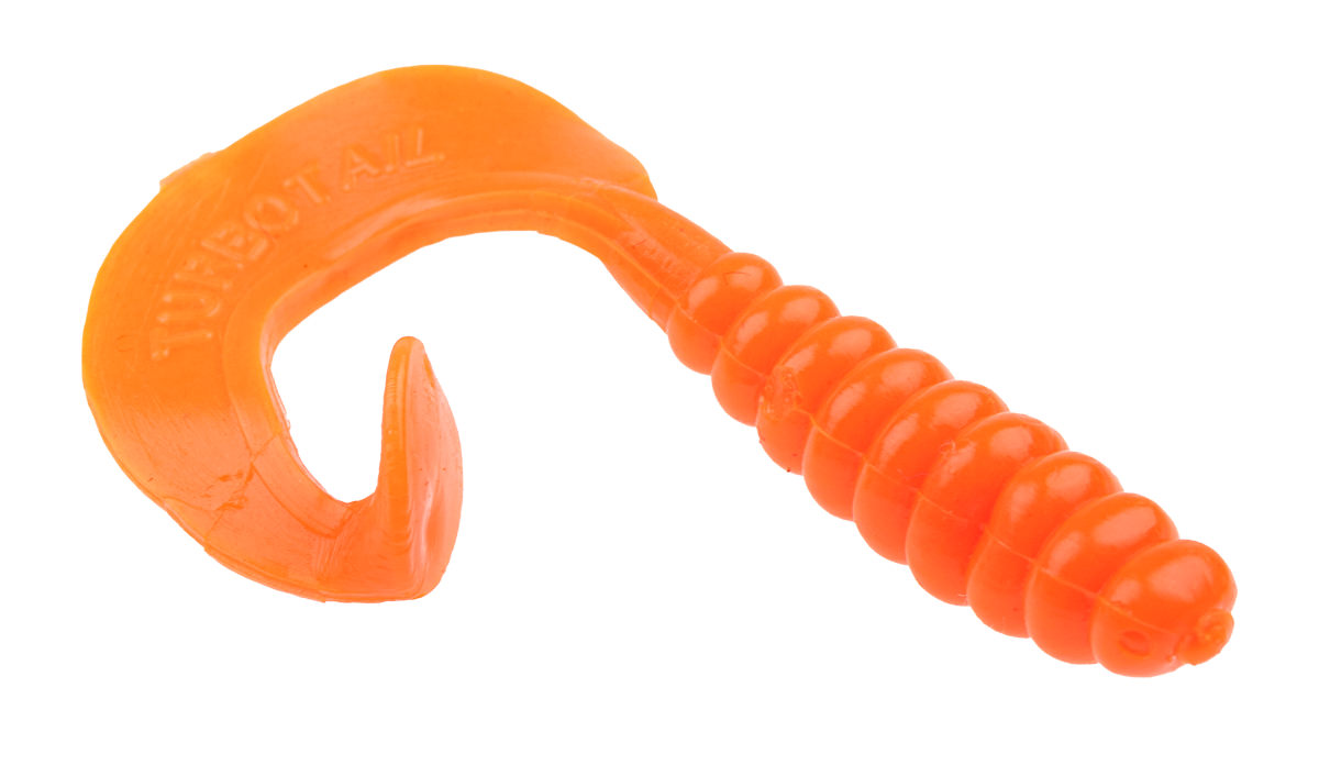 Der Turbotail ist die Rakete unter den Twistern. Durch seine Schaufel fängt er schon beim kleinsten Zug an, sich durchs Wasser zu schrauben. Außerdem - und das ist das Besondere - erzeugt diese Schwanzform Druckwellen, die ständig Appelle an das Seitenlinienorgan der Räuber aussenden. Die vielen Farben und vor allem die erprobt fängigen Farbkombinationen sorgen dafür, dass sowohl Wels-, Zander-, Hecht-, Forellen- als auch Barschspezis für jedes Gewässer den perfekten Köder zur Hand haben. Im klaren Wasser vertraut man auf gedeckte Farben. Ein wenig Glitter kann aber nie schaden. Ob rot-, gold-, grün- oder rauchsilber-metallic. Diese Töne imitieren perfekt das Schuppenkleid eines Futterfisches. Im Trüben und in der Dämmerung fischt man in grellen bzw. ausfälligen Tönen. Während im Sommer die kleineren Modelle zum Einsatz kommen, vertraut man im Winter auf die Größen C und D für Barsch und Zander. Damit aber nicht genug. Auch im Salzwasser zeigt der Turbotail was er kann. Selbst beim Vertikalangeln auf Plattfische, Dorsch, Pollack und Co. wirkt dieser Köder Wunder. Der orange/grüne (Spitzname „Karotte“) vor jedem Pilker am Seitenarm vorgeschaltet, ist „der Bringer“!. An der Mundschnur einen 172s 1/0 Wahnsinnshaken oder ein extra leichter Rundkopf (024C mit blauem Haken). Das Gewicht des Kopfes darf minimal sein, unheimlich wichtig dabei ist der angegossene Dorn. Er verhindert das beim ständigen Anheben und Absenken des Pilkers der Turbogummi in den Hakenbogen rutscht. Am Forellenteich unschlagbar verführerisch lassen sich die ganz kleinen Turbotail in Gr. A/0 und Gr. A, wie eine künstliche, quicklebendige Bienenmade in breiter Farbpalette, die Salmoniden verrückt werden. Sind die Fische aktiv, kann schneller gefischt werden. Bei trägen Fischen ganz langsam fischen und das Tempo zwischenzeitlich variieren.  All das und vieles mehr ist mit dem Turbotail möglich.